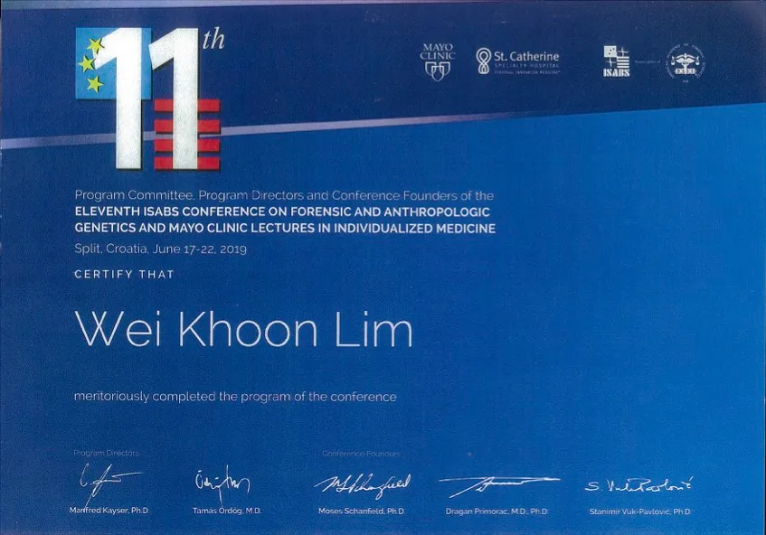 - ได้รับวุฒิบัตรการฝึกอบรมจากสมาคมโครเอเชียระหว่างประเทศ ด้านการแพทย์และการดูแลสุขภาพเฉพาะบุคคล (Croatian International Society for Personalized Medicine and Health)